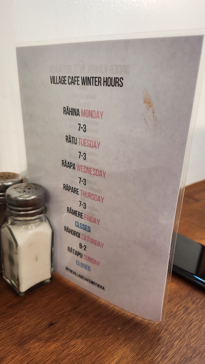 The Village Cafe Motueka Menu